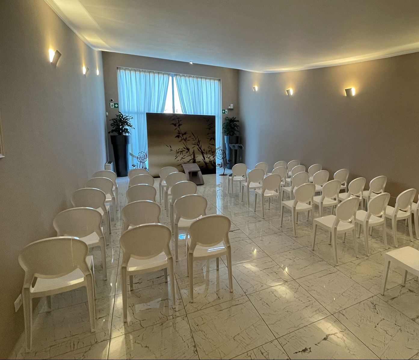 La sala del commiato è un ambiente dedicato al saluto della persona scomparsa e per tale motivo è allestito in modo sobrio ed elegante: viene frequentato dagli affetti del defunto, famiglia e amici più cari, durante la veglia e il rito funebre. Al suo interno è possibile riunirsi e raccogliersi prima che la salma venga tumulata, inumata o cremata.